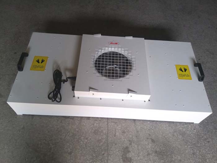 FFU安裝現場從包裝箱內小心取出FFU, 按制造商的書面說明、天花板制造商的設計標準安裝FFU。對齊調整裝置至水平,誤差±1.6mm。FFU安裝應符合潔凈室吊頂格柵系統制造商的標準,與其它安裝工作進行協調,包括(但不限于)電氣、消防及照明。