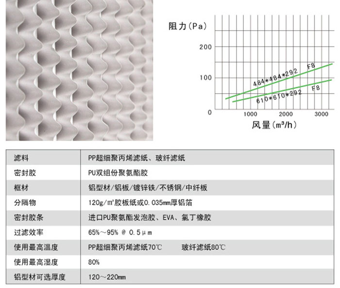 中效F8過濾效率:對≥1.0μm顆粒的過濾效率在80%以上。